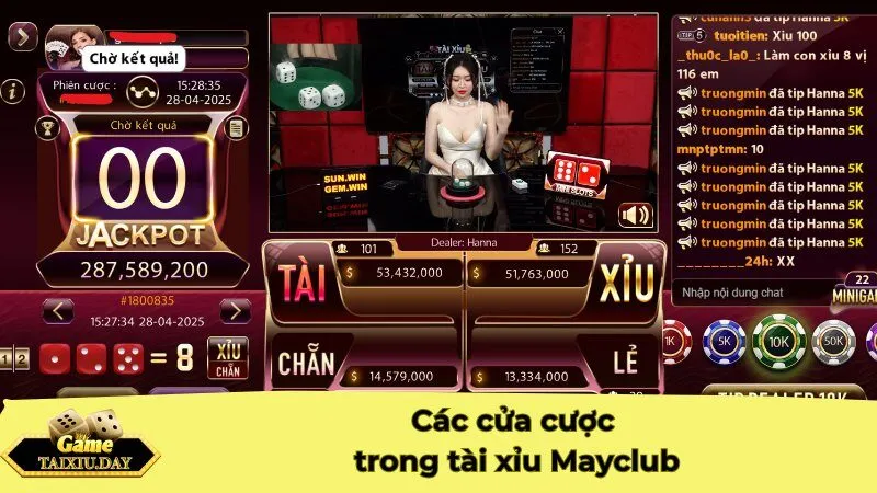 Các cửa cược trong tài xỉu Mayclub